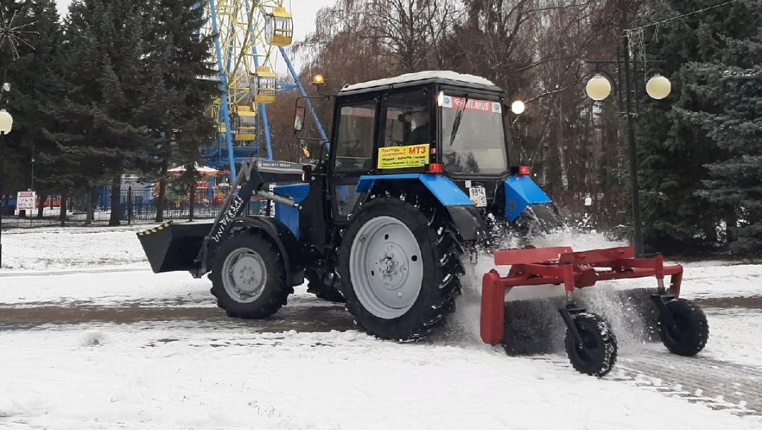 МТЗ-82.1 оснащён навесным оборудованием. Оно позволят автоматизировать уборку.