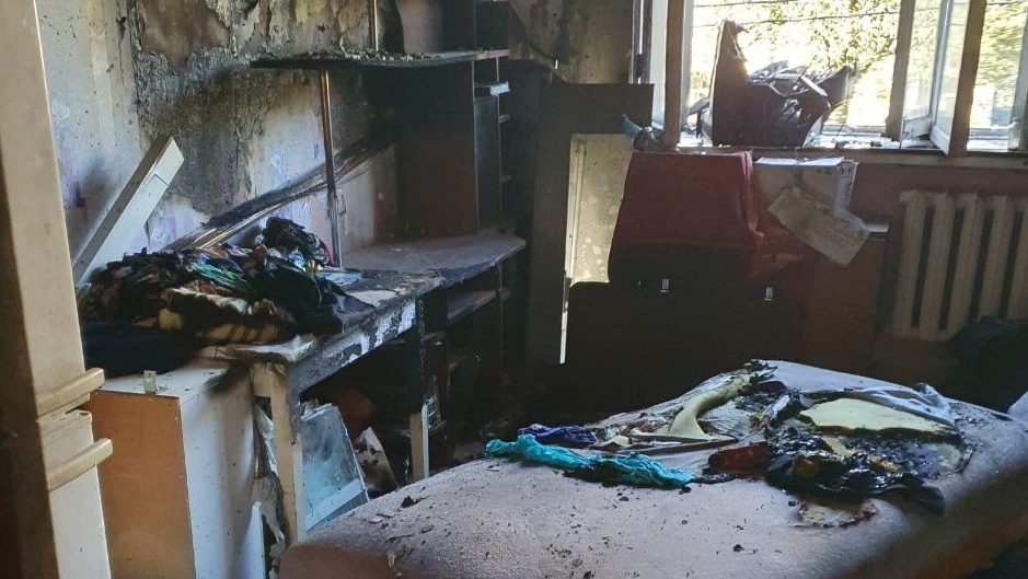 В результате возгорания комната повреждена, сгорела часть имущества. Причина пожара устанавливается.