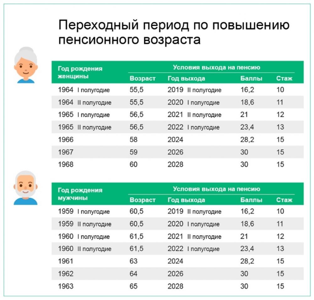 В России продолжается переходный период, в течение которого происходит поэтапное повышение возраста, дающего право на назначение страховой пенсии по старости. По завершении переходного периода к 2028 году возраст выхода на пенсию увеличится: у мужчин до 65 лет, женщин — до 60 лет.