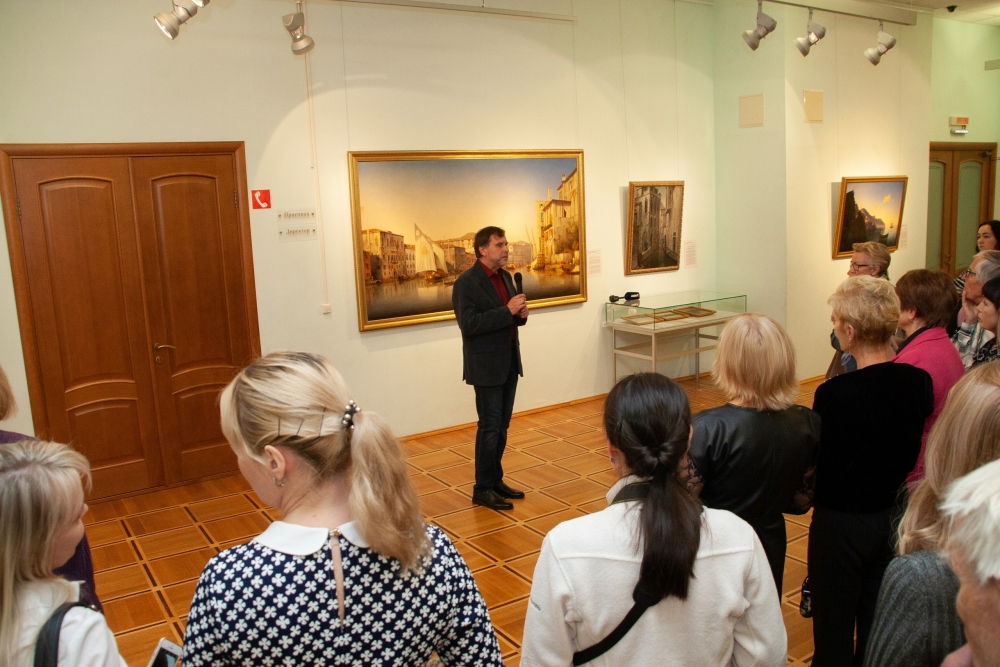 — Известный русский художник-живописец Илья Глазунов, который мыслил эмоционально, говорил, что художники никогда не ездили по странам как туристы. Я подумал, что это ведь — правда. Мастера, чьи произведения представлены в залах вашей галереи, не были даже путешественниками в обывательском смысле слова. Их поездки происходили, как правило, по какому-то заданию. Редко, кто ездил за свои деньги и по зову души. Они выезжали за границу, чтобы изучать города и страны и претворить все эти впечатления в своих произведениях, которые были им заказаны, — рассказал искусствовед.