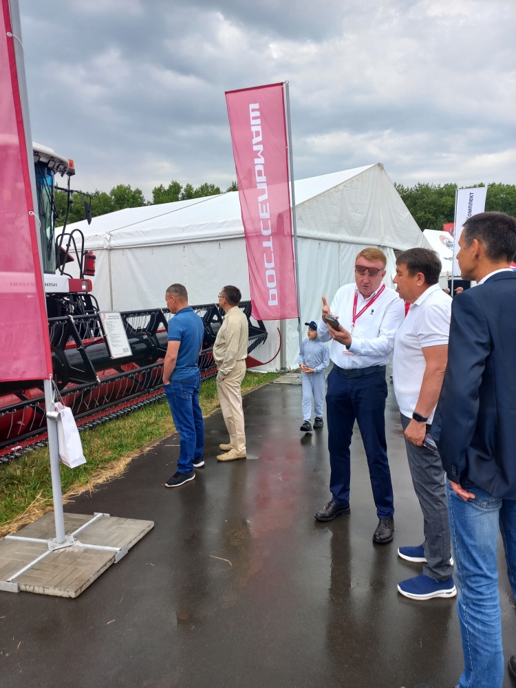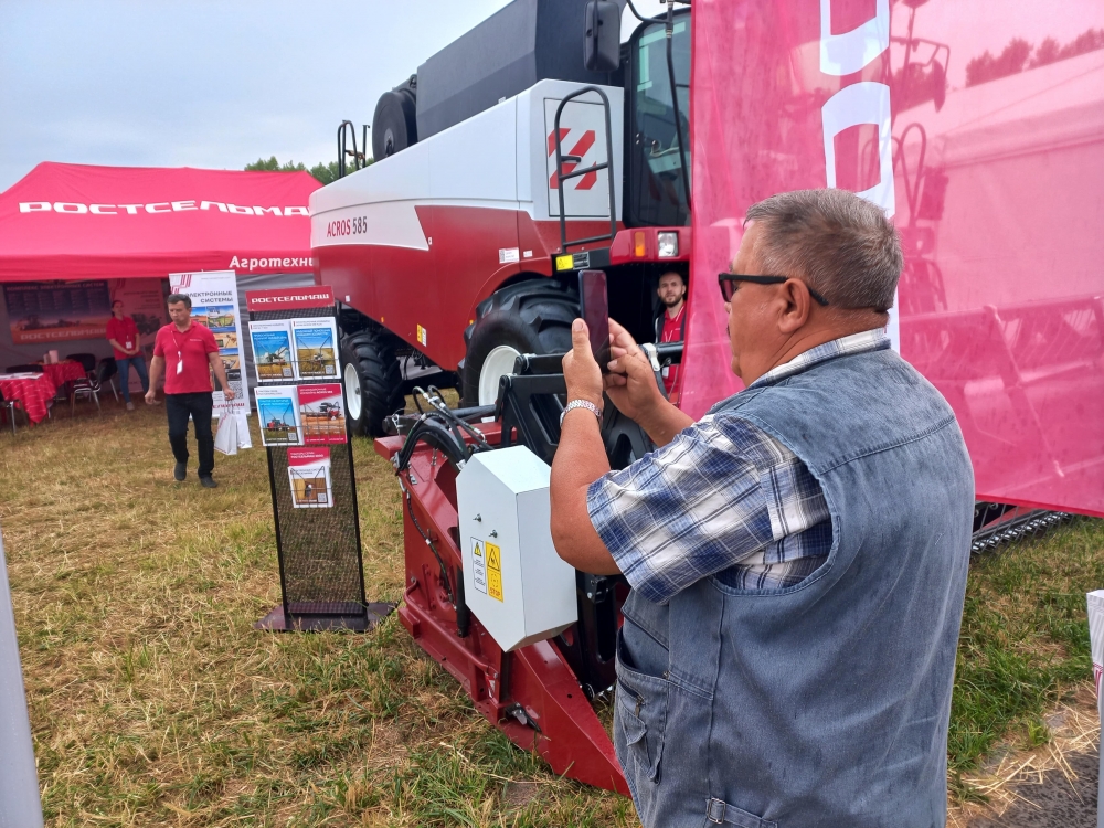На экспозиции Ростсельмаш был представлен зерноуборочный комбайн ACROS 585 пятого класса с семиметровой жаткой, который получил множество положительных отзывов от марийских фермеров.