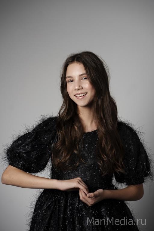 12 лет. Рост 165 см. 10 лет занимается эстрадным вокалом, посещает музыкальную школу по классу фортепиано, увлекается актерским искусством, моделингом, журналистикой и путешествиями, о которых ведет блоги. Является победителем многих международных вокальных и танцевальных фестивалей и конкурсов, в том числе телевизионных, была во всероссийских и международных детских центрах. Участие в конкурсе считает отличной возможностью расширить свой круг знакомств, приобрести новые навыки и развить скрытые способности. Источник: TK MODELS SCHOOL&AGENCY