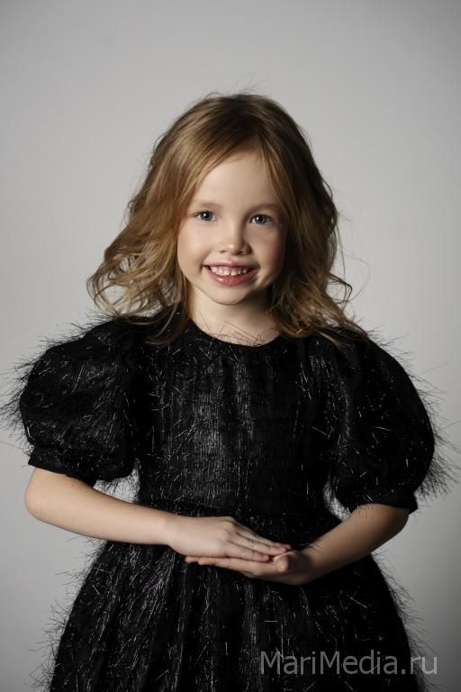 6 лет. Рост 110 см. Любит рисовать, петь и плавать. Как и каждая маленькая девочка любит наряжаться и чувствовать себя маленькой принцессой. Любит животных, мамина помощница. Папина радость. Источник: TK MODELS SCHOOL&AGENCY