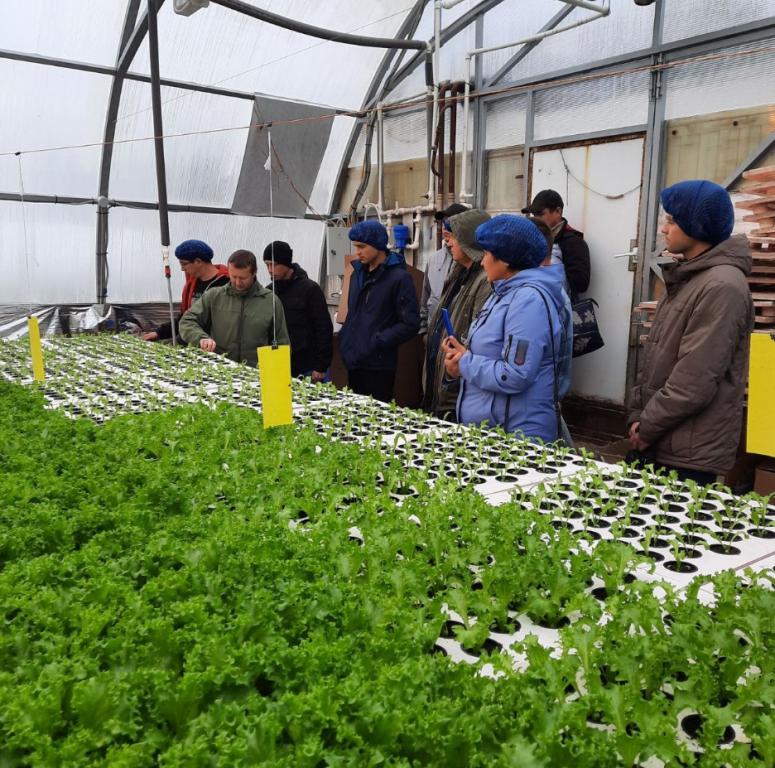 Слушатели направления «Производство овощной, плодовой и ягодной продукции» посетили тепличное хозяйство «Сан-Мари», которое занимается производством свежей зелени. Сергей Мелентьев, руководитель инновационного предприятия, рассказал об основных моментах технологии выращивания салатов в теплицах и рынках сбыта. Свежая зелень поставляется в кафе и рестораны города, а также населению по заявкам. Продегустировав продукцию, производимую в «Сан-Мари», ученики «Школы фермера» отметили большой ассортимент и отличный вкус.