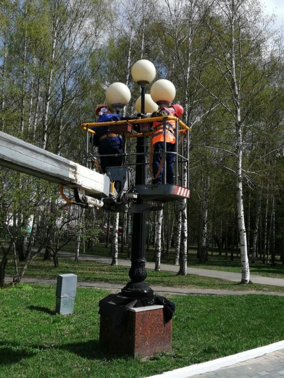 Так, в Центральном парке культуры и отдыха у мемориального комплекса появилась Георгиевская ленточка из бархатцев. Клумбы украсили цветущими виолами. Проведены работы по покраске уличных торшеров и настройке элементов праздничной иллюминации.