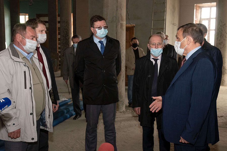На стройплощадке соблюдаются все необходимые меры по профилактике коронавируса. Перед входом в здание всем участникам выездного совещания продезинфицировали руки и измерили температуру.