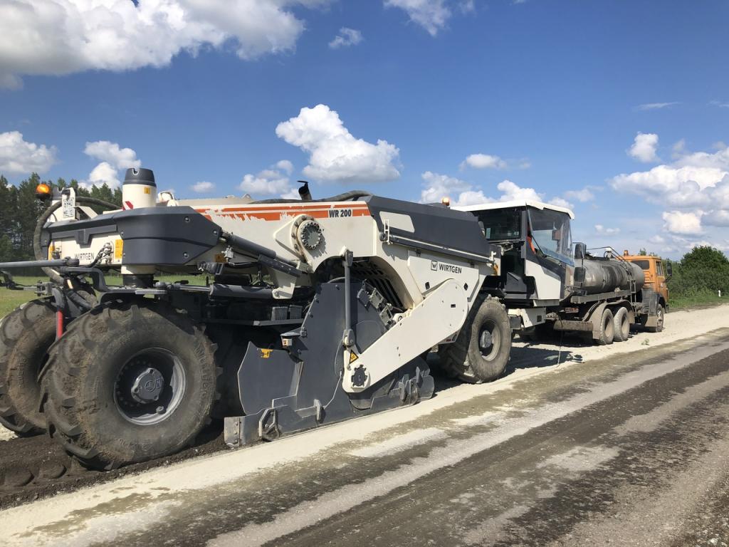 На сегодняшний день выполнены работы по фрезерованию асфальтобетонного покрытия. Подрядная организация ведёт работы по устройству основания методом холодной регенерации.