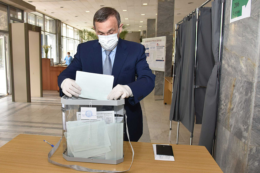 На участок для голосования № 15, расположенный в ОПЦ, Глава региона пришёл вместе с супругой Юлией Леонидовной. Процедура голосования прошла с соблюдением всех санитарно-эпидемиологических мер безопасности.
