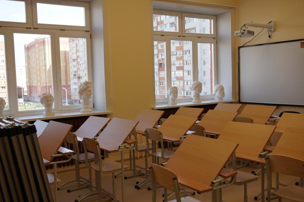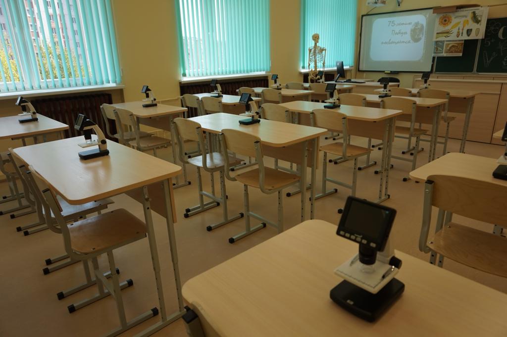 Помимо стандартных классов, в новой школе имеются кабинеты деревообработки и металлообработки — для мальчиков, а также кулинарии, кройки и шитья — для девочек. Класс биологии оснащен электронными микроскопами, для изучения иностранного языка установлено лингафонное оборудование, а в кабинете изо — мольберты.