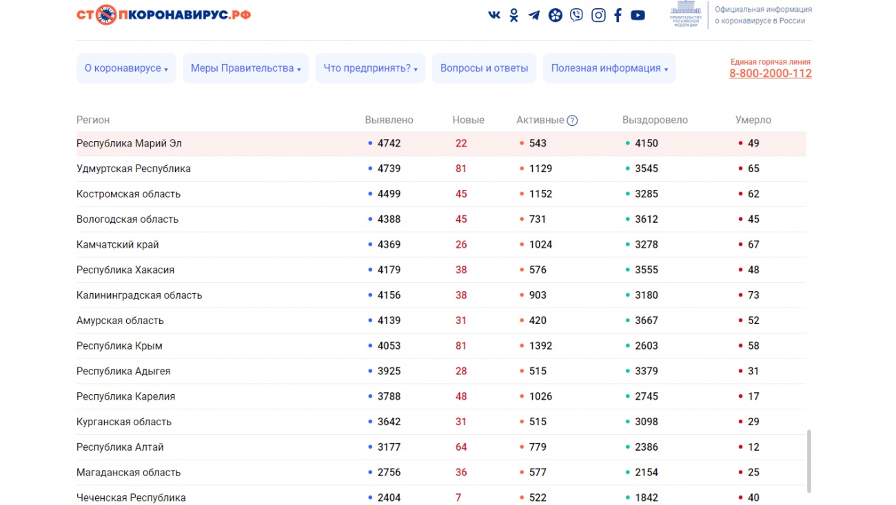 В Марий Эл ситуация с коронавирусом остаётся стабильной. За прошедшие сутки выявлено 22 новых случая COVID-19, новых смертей от болезни нет. По информации сайта «стопкоронавирус.рф», всего с начала пандемии в республике зафиксировано 4742 случая ковид.