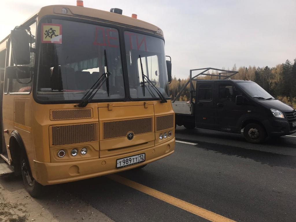 Сегодня в 8:05 в Медведевском районе на 22 км автодороги «Йошкар-Ола — Зеленодольск» произошло дорожно-транспортное происшествие с участием школьного автобуса.