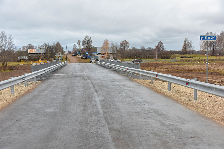 Раньше деревни связывал узкий деревянный мост в одну колею, проехать по нему могли только легковые машины. Теперь здесь построена асфальтированная автомобильная дорога протяженностью 322 метра с возведением моста через реку Лаж высотой 4,5 метра, шириной 6 метров.