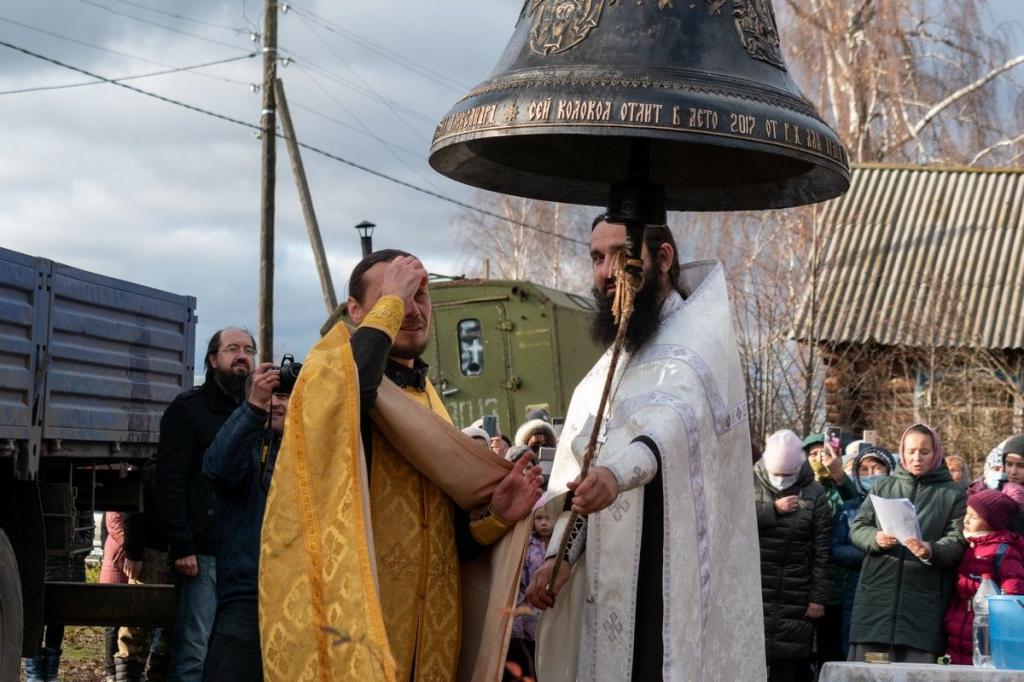 После долгого перерыва в селе снова прозвучал колокольный звон. Освящение колоколов для нового храма совершили клирик храма Рождества Христова Йошкар-Олы иерей Никита Смирнов, окормляющий приход, и клирик Воскресенского собора иерей Андрей Кочаков.