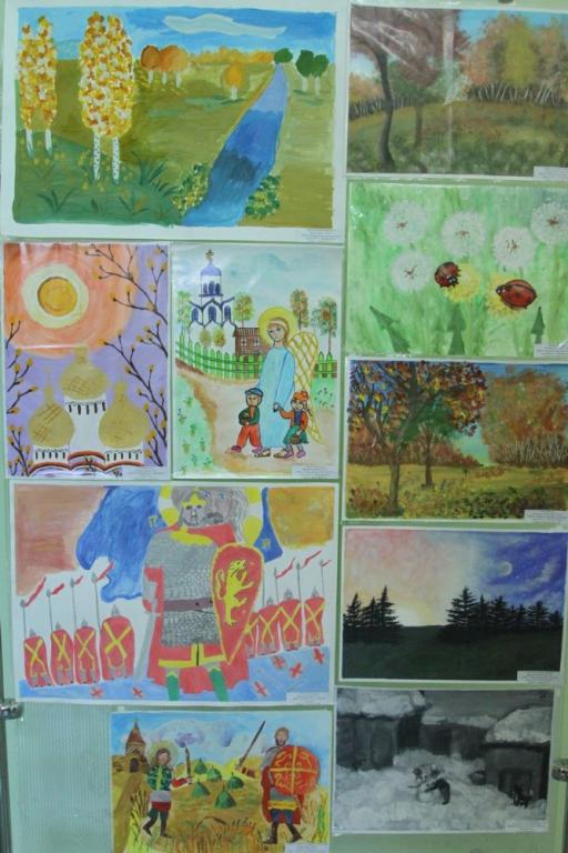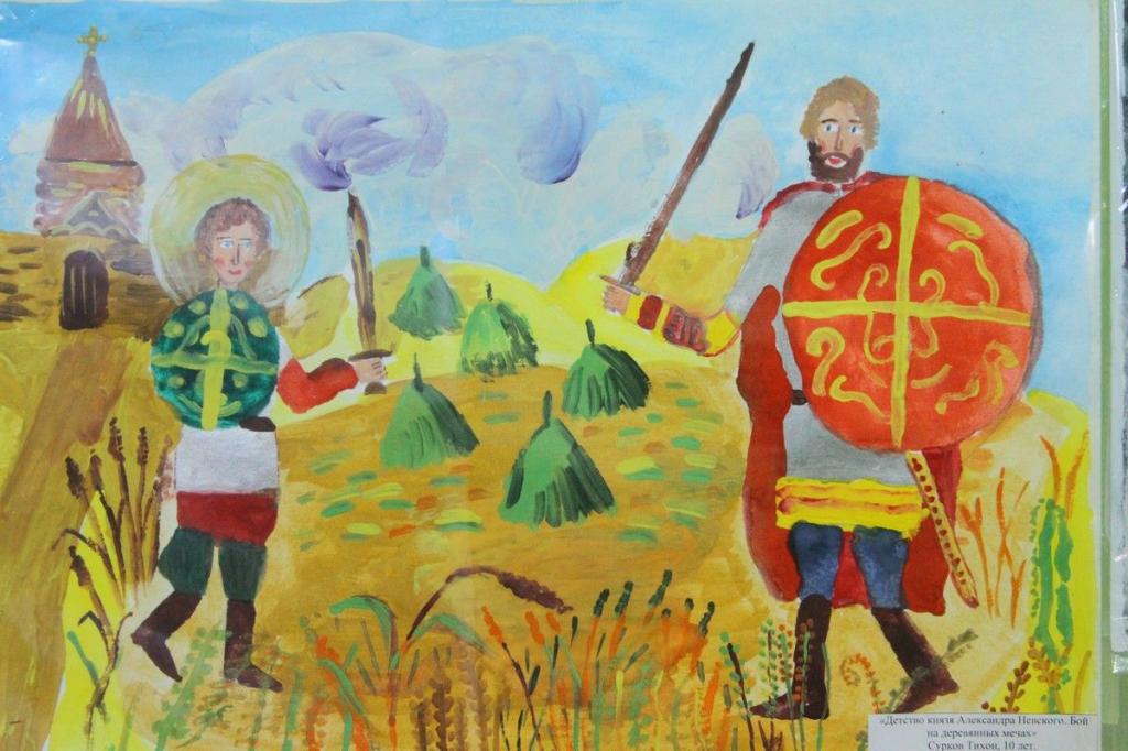В своих рисунках дети постарались отразить свое отношение к святому благоверному князю Александру Невскому, а также то, как они понимают библейские сюжеты, своё отношение к православному храму и Родине.