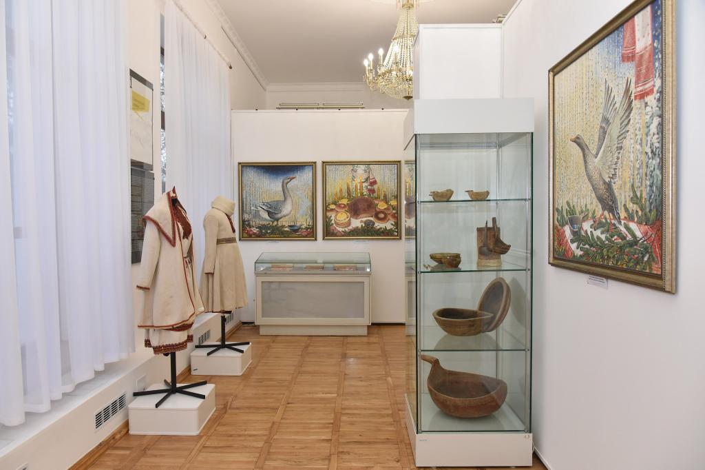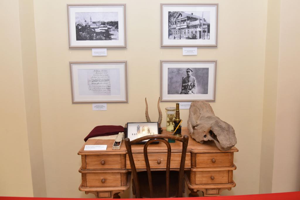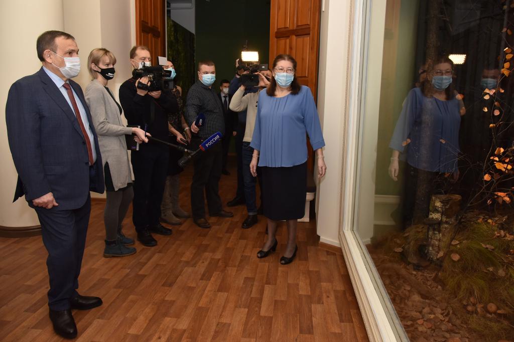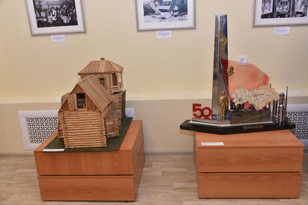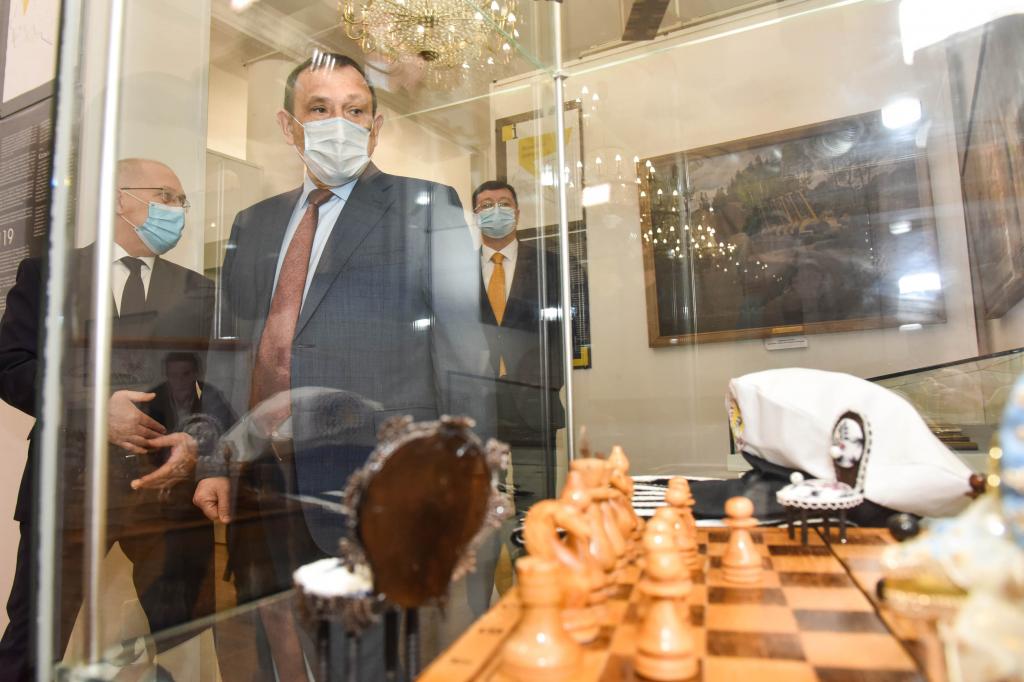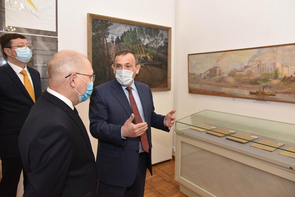 Старший научный сотрудник отдела истории Сергей Свечников представил Александру Евстифееву выставку «100 лет национальному музею Республики Марий Эл» и рассказал об основных этапах развития культурного учреждения.