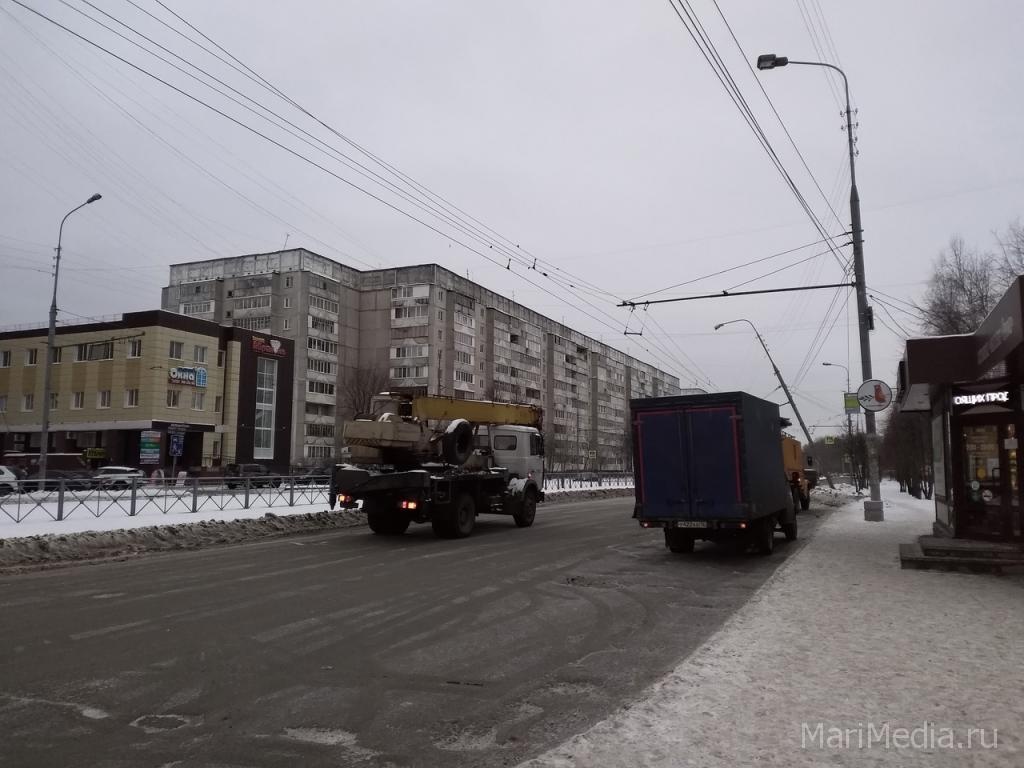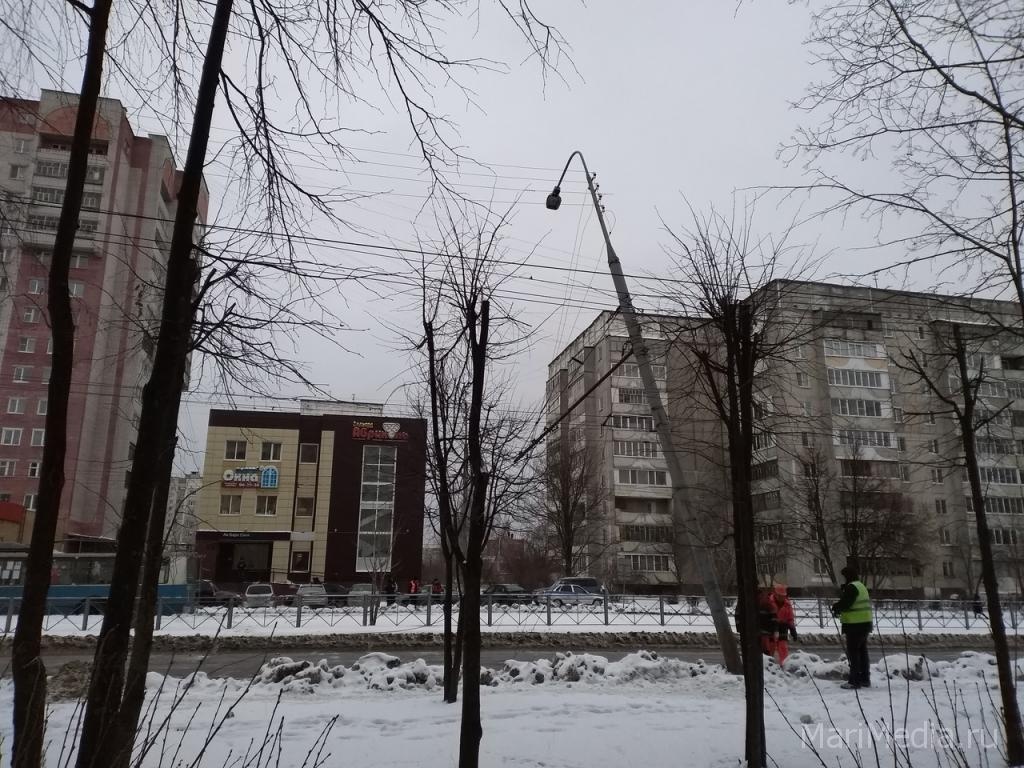В Йошкар-Оле перекрыто движение по улице Петрова. Как сообщили ИА МариМедиа очевидцы, на нечётной стороне улицы сильно накренился столб уличного освещения. Его падение сдерживают только линии электропередачи для троллейбусов.