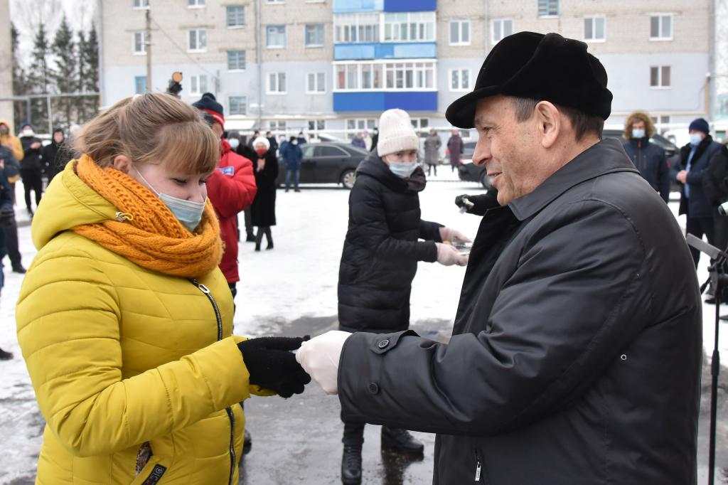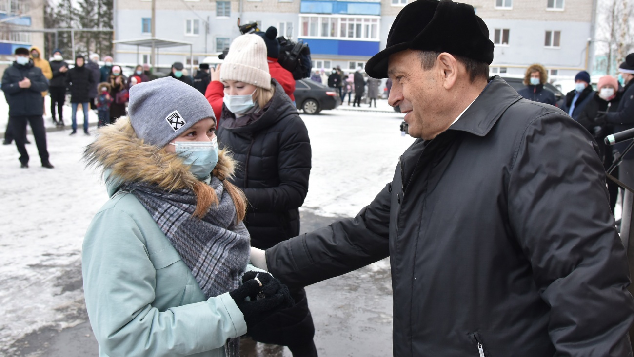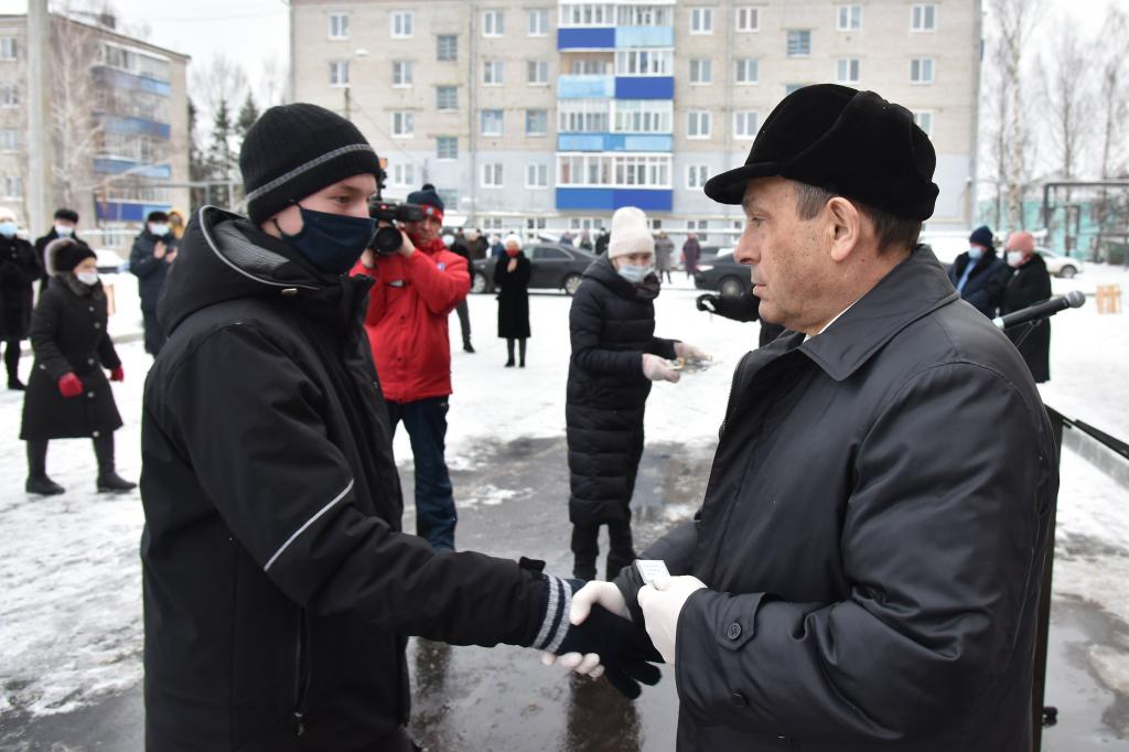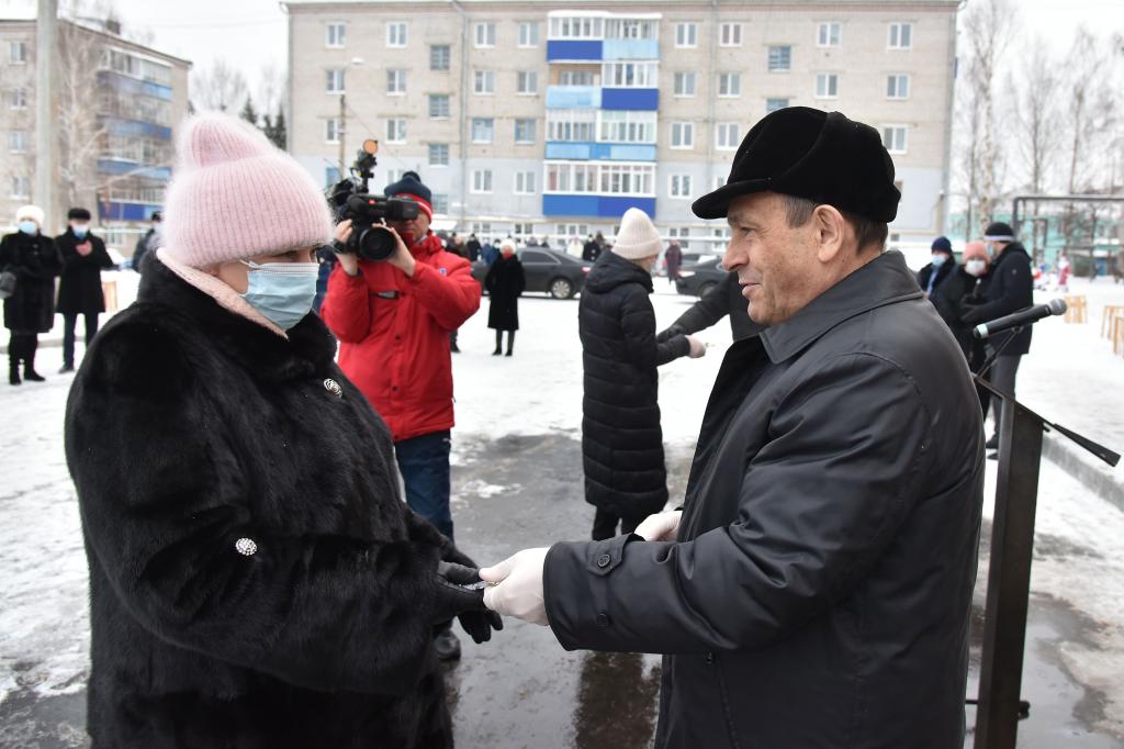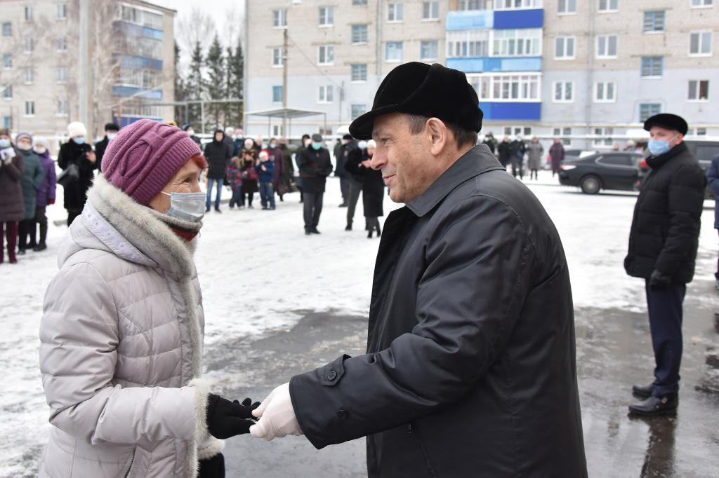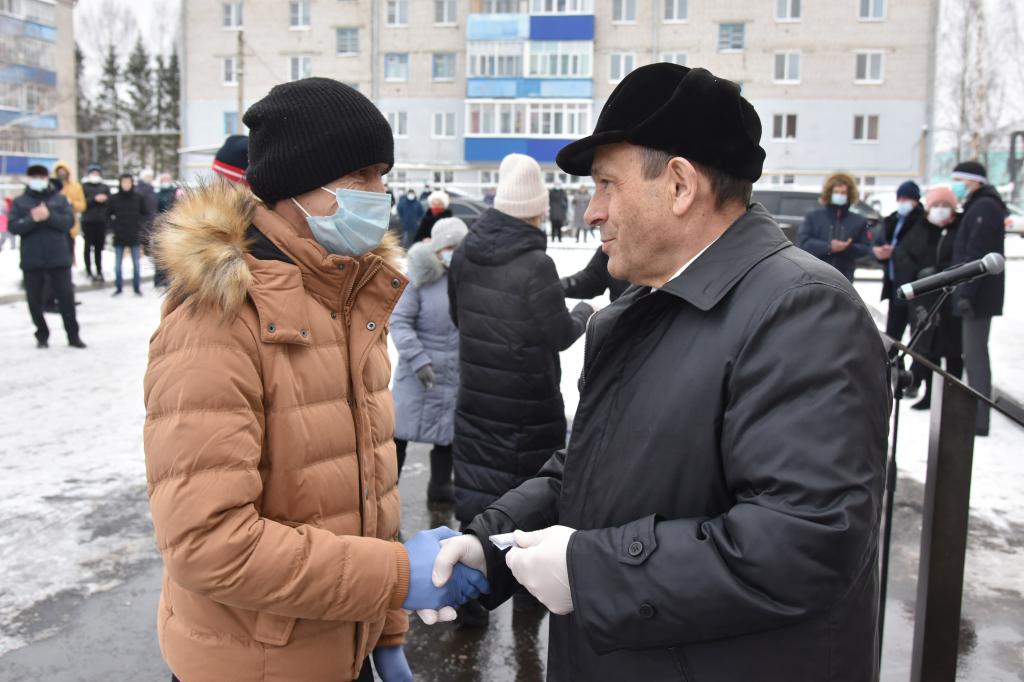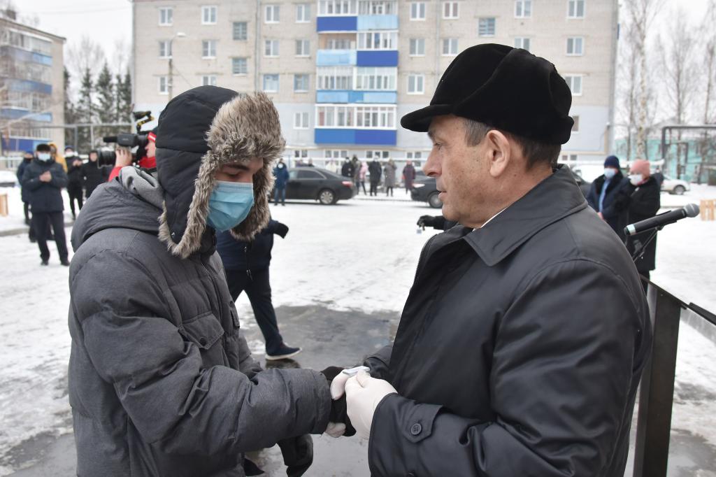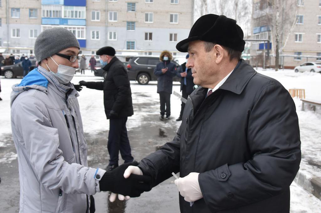 Александр Евстифеев торжественно передал ключи новосёлам, после чего осмотрел квартиры.