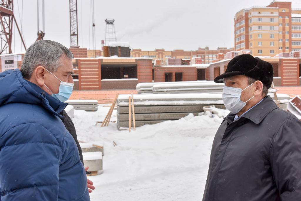 Далее Глава республики посетил строительную площадку детского сада в микрорайоне «Мирный», где возводится дошкольное образовательное учреждение на 320 мест. На объекте применен типовой проект. Цена контракта составляет почти 223 млн рублей.