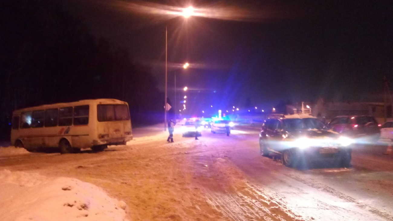 После наезда автобус выехал на встречку, где врезался в машину Renault Duster, водитель которой остановился, чтобы пропустить пешехода. В результате столкновения с иномаркой автобус оказался в сугробе.