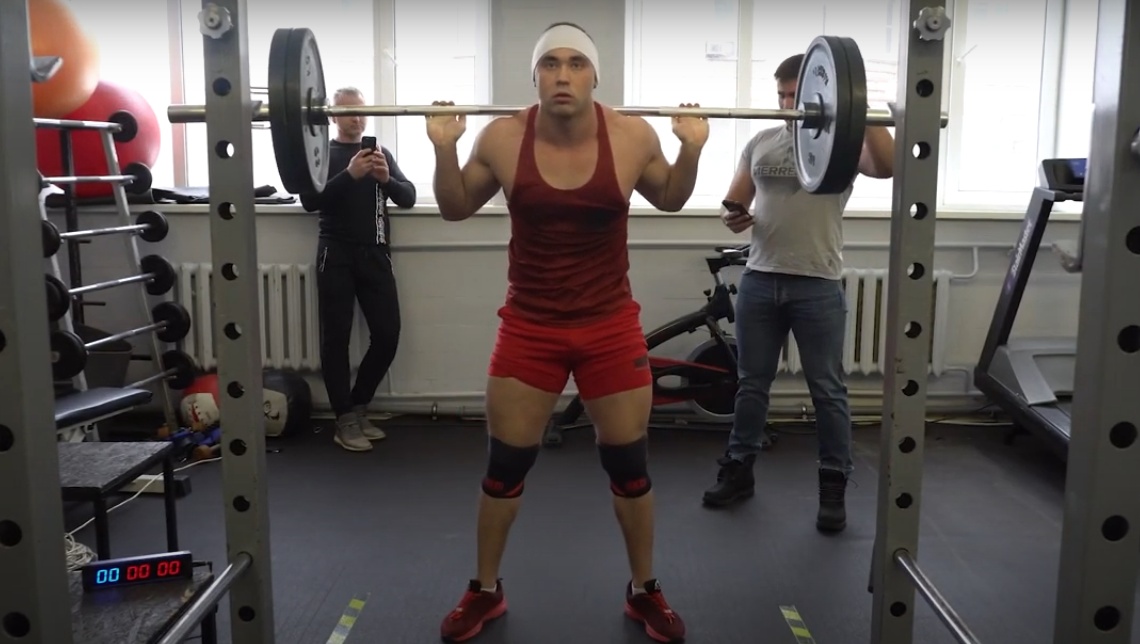 Всем привет друзья, я Сергей Скольский 2х кратный Чемпион Мира по пауэрлифтингу, в этом видео мы зафиксировали новый Рекорд Гиннеса, присев с дополнительным собственным весом на максимальное количество повторений за 1 минуту. Предыдущий рекорд принадлежал жителю Индии КАПИЛ КУМАРУ, который сделал 34 повторения. Мне удалось выполнить 37 повторений. Мой собственный вес 96кг, штанга 100 кг, что на 3 повторения превышает предыдущий результат.