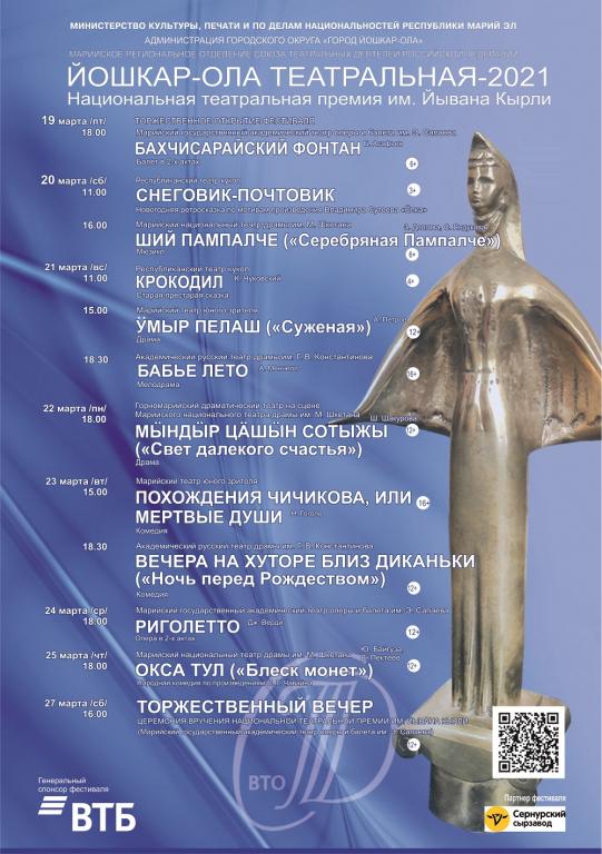 Как рассказали в Минкультуры Марий Эл, фестиваль завершится 27 марта церемонией вручения Национальной театральной премии им. Й.Кырли.