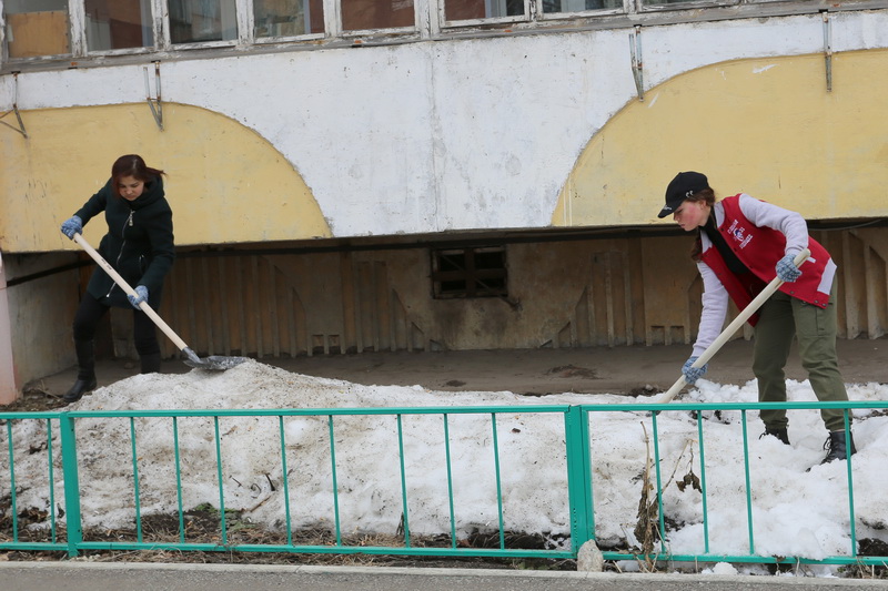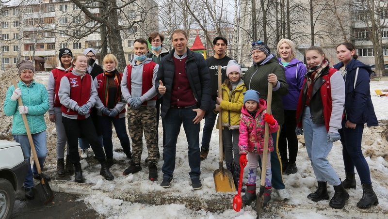 10 апреля члены волонтёрского корпуса Марийского государственного университета и жители Центрального округа Йошкар-Олы, вооружившись перчатками, лопатами, граблями и пакетами, приняли участие в общегородском субботнике, объявленном Администрацией города.