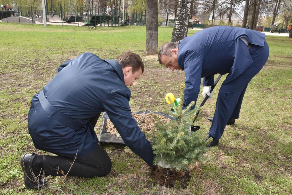 К акции присоединился Глава Марий Эл Александр Евстифеев. Сегодня Глава региона посадил саженец голубой ели в Парке Победы.
