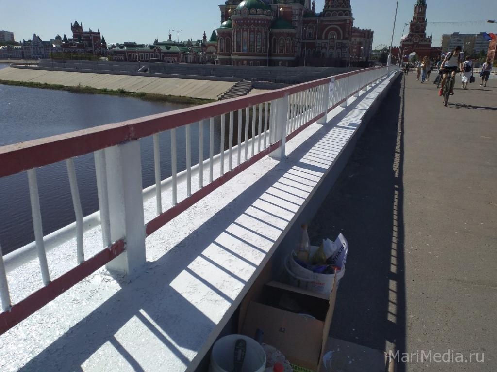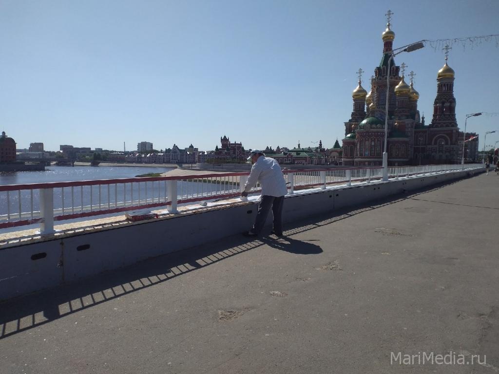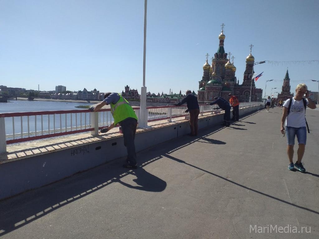- 1. Сегодня на Театральном мосту ведутся реставрационные работы. Специалисты МУП «Город» красят перила.