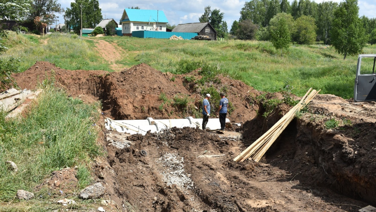 В деревне Мари-Шолнер Мари-Турекского района ремонтируют автомобильный проезд через реку Туречку и закладывают водопроводные трубы.