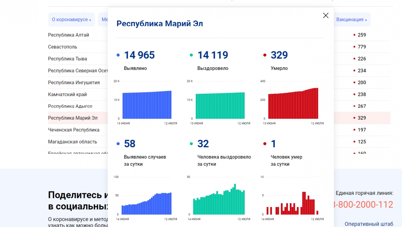 За весь период по России умерло 143712 человек, в Марий Эл — 329.