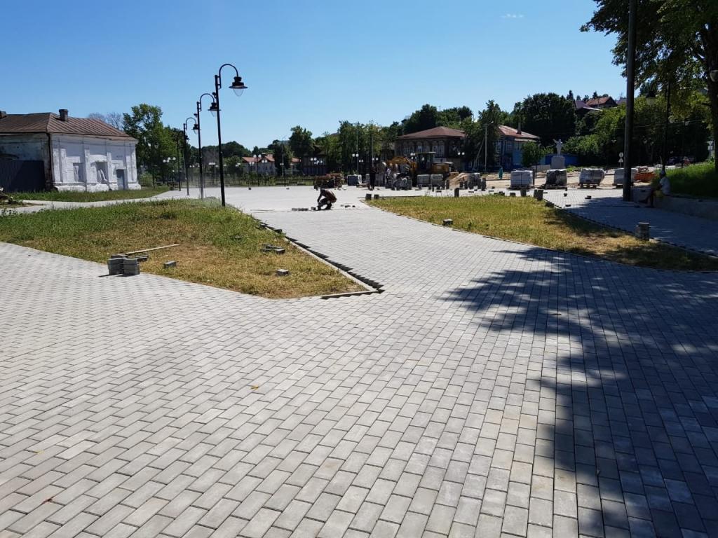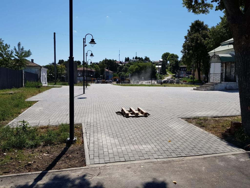 На данный момент завершаются работы по благоустройству парка, закончена заливка парапета вдоль музея Остапа Бендера и здания магазина «Якорь». Продолжаются работы по площадному покрытию. Рабочие делают брусчатку, бордюры и водоотводы.
