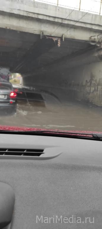 Пассажиры троллейбусов оказались в водной ловушке, сообщили ИА МариМедиа очевидцы. После ливня, обрушившегося сегодня на марийскую столицу, поднялся уровень воды на проезжей части. В настоящее время на ул. К. Маркса под мостом в районе автовокзала уровень воды превышает критическую отметку для электрического транспорта.