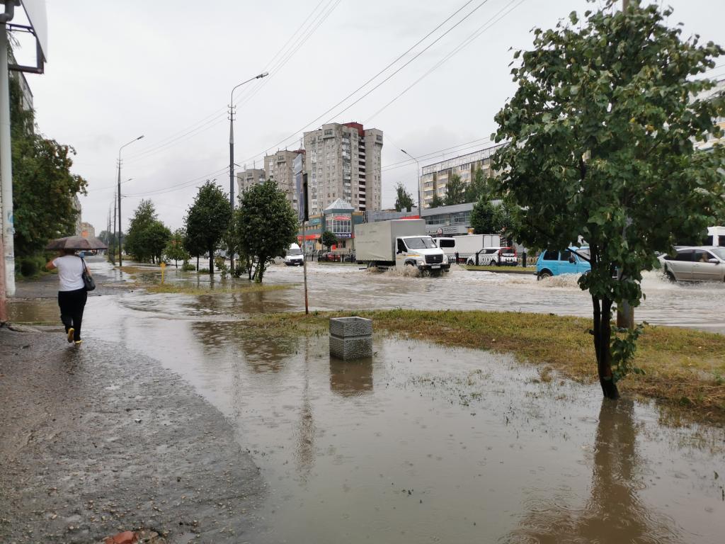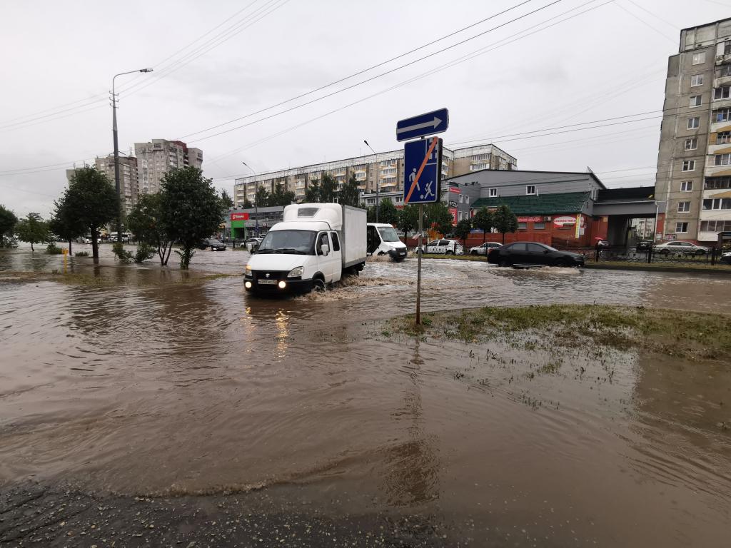 Очевидцы прислали фотографии, где наглядно видно, что микрорайон «Сомбатхей» опять «уходит под воду». Ливневая канализация на ул. Воинов-Интернационалистов не справляется с количеством выпавших сегодня осадков.