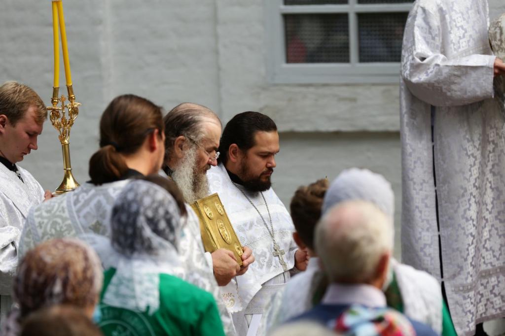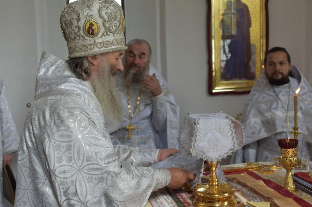 Освящение храма началось с торжественной встречи митрополита Иоанна, который внёс в храм частицы мощей святых Вифлеемских мучеников, предназначенные для вложения в престол храма, и мощи сщмч. Владимира Четверина, которые были вложены в антиминс.