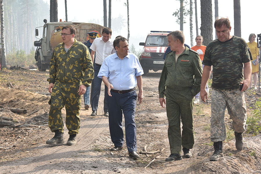 Рядом находится населённый пункт, а в паре километров — федеральная трасса, поэтому работа здесь не прекращается ни на минуту. Директор учебно-опытного лесхоза ПГТУ Николай Попов рассказал главе республики, что их группой в составе около 100 человек постоянно контролируются границы в пределах 3,5 км.