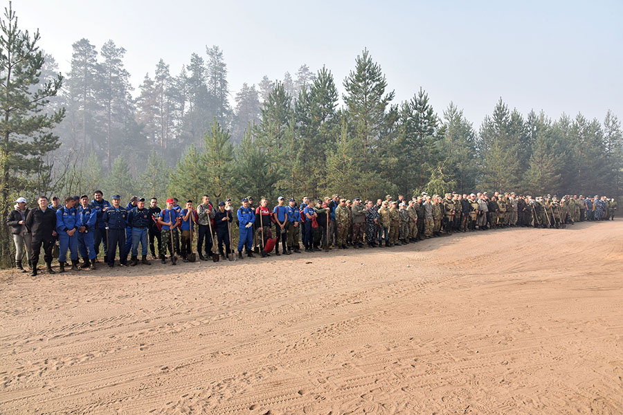 Александр Евстифеев, приветствуя огнеборцев на построении, поблагодарил их за профессионализм и подчеркнул, что важно не прекращать работу до полной ликвидации задымления на всех участках.