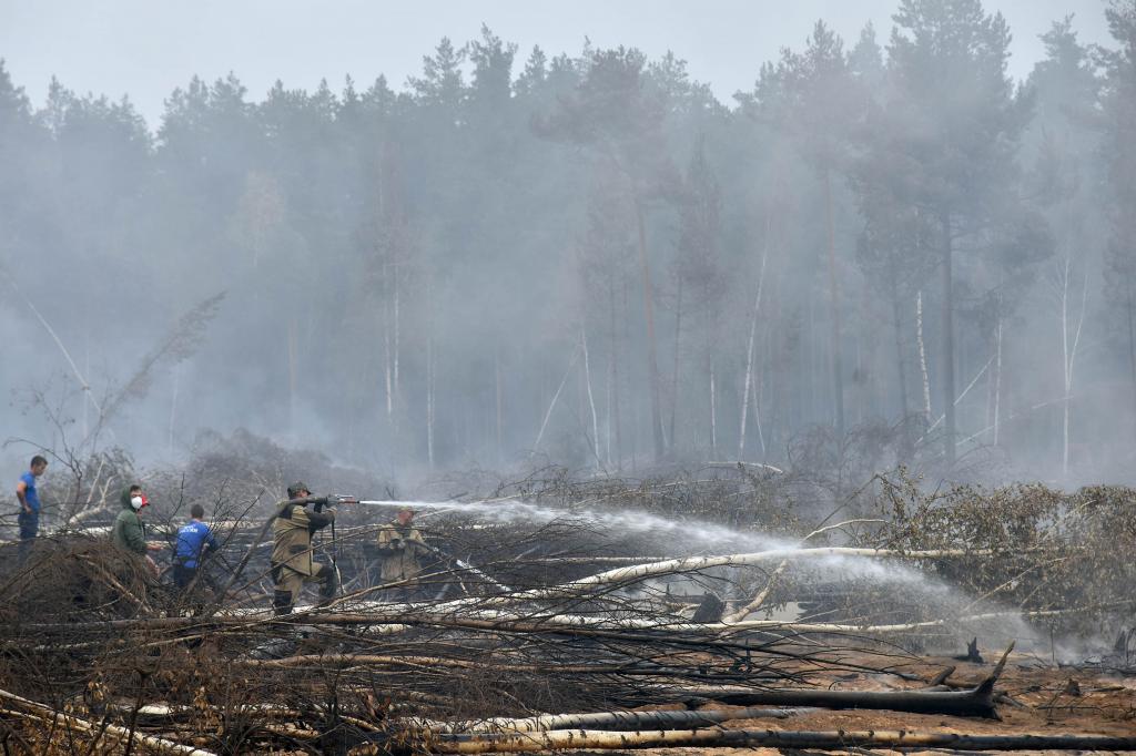 Для тушения используется рукавная линия, которая проложена от пруда посёлка до края торфяника. Общая протяженность пожарного рукава - 1,5 км. Помимо основных сил, которые работали на протяжении последних дней,  привлечены студенты - будущие спасатели. Кроме тушения торфяников продолжается окарауливание леса. В общей сложности для ликвидации оставшихся очагов возгорания задействовано 250 человек и 50 единиц техники.