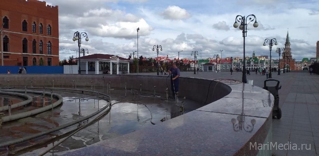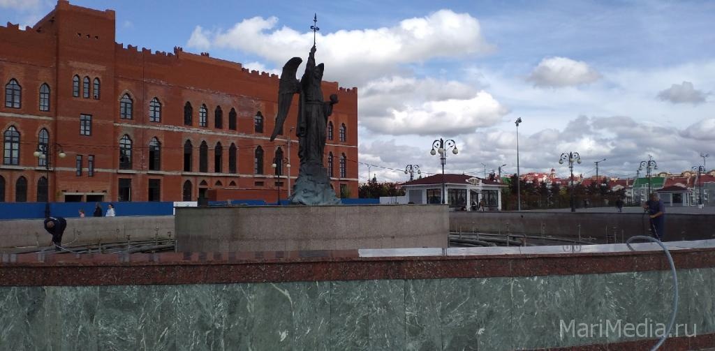 Юные йошкаролинцы облюбовали городской фонтан «Архангел Гавриил».