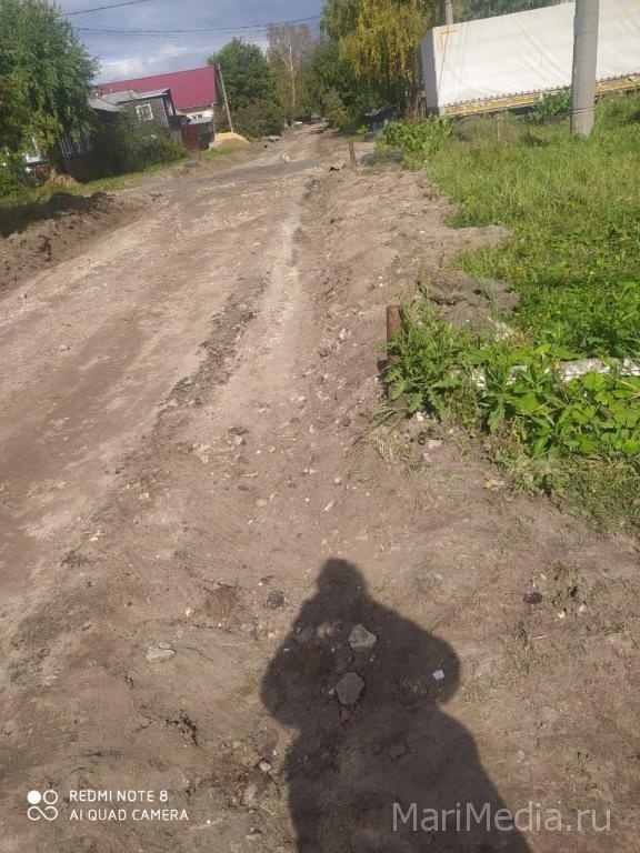 В редакцию ИА МариМедиа поступило сообщение от йошкаролинцев, проживающих в частном секторе на улице Маяковского. Местные жители недовольны тем, что коммунальные службы, начав работы по водоотведению на улице, сняли верхний слой асфальта с проезжей части, прорыли канавы по обочинам дороги, и работы на этом прекратили.