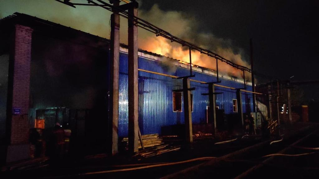Загорелось производственное помещение одного из деревообрабатывающих предприятий на улице Соловьёва. Возгорание обнаружил охранник.