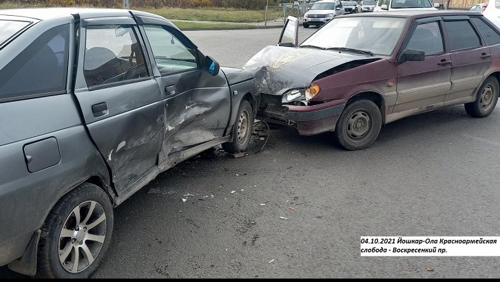 Вчера в Йошкар-Оле на перекрёстке улиц Красноармейская слобода и Воскресенский проспект столкнулись два отечественных автомобиля.