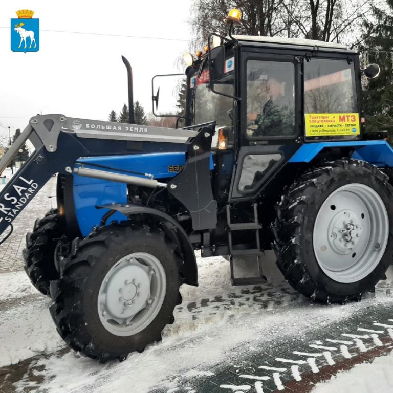 МТЗ-82.1 оснащён навесным оборудованием. Оно позволят автоматизировать уборку.