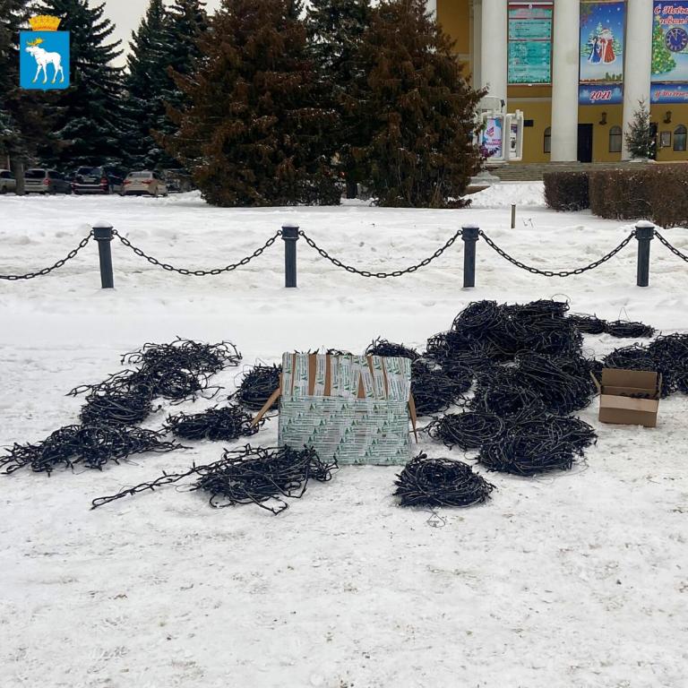 По данным мэрии Йошкар-Олы, часть гирлянд — 96 нитей, будут украшать само дерево, остальные 120 нитей — создадут сверкающую вуаль вокруг новогоднего символа.