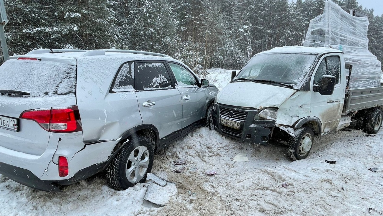 Сегодня около 11 часов на 1 км автодороги «Волжск — Часовенная» Волжского района произошло массовое ДТП. Столкнулись «Лада Гранта», Kia и «Газель».