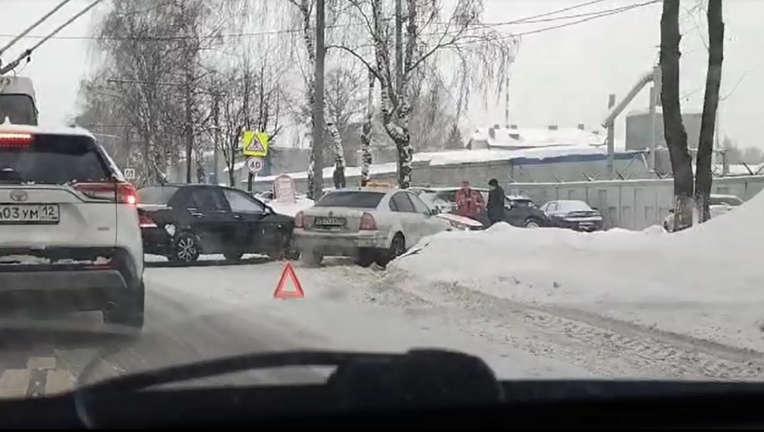 В Йошкар-Оле на улице Машиностроителей около 13:00 произошло ДТП. Столкнулись два автомобиля: Mitsubishi и Volkswagen.