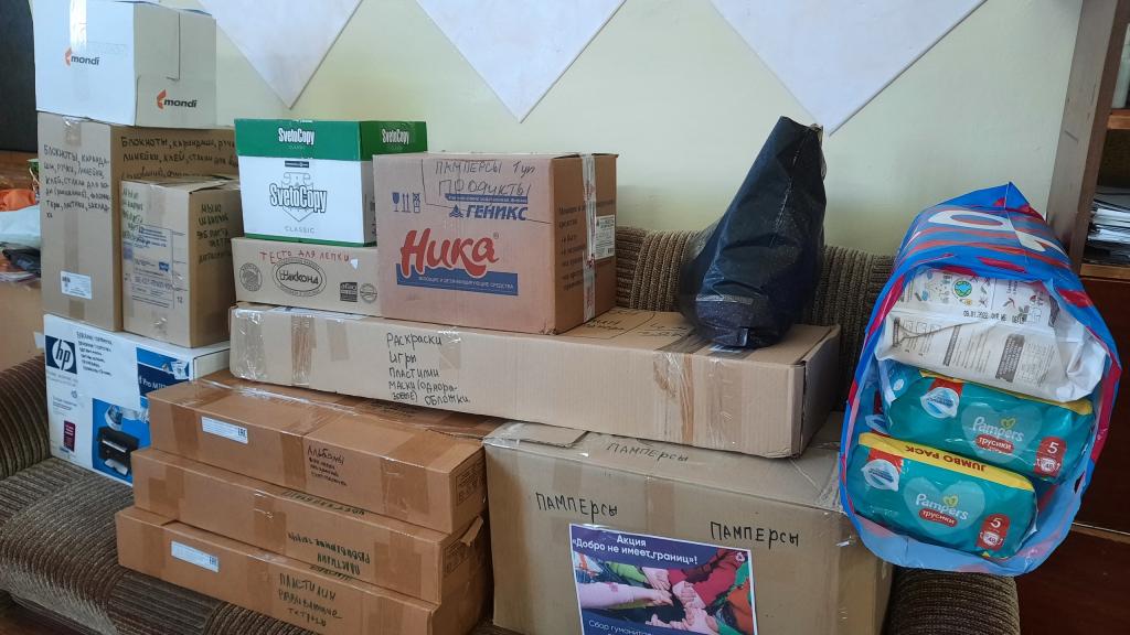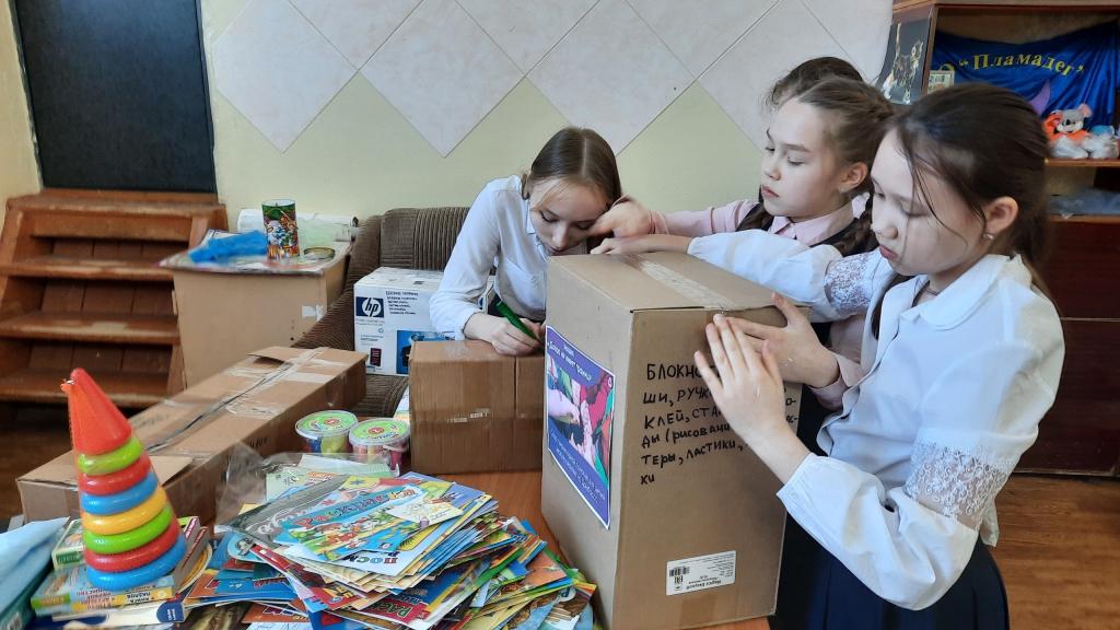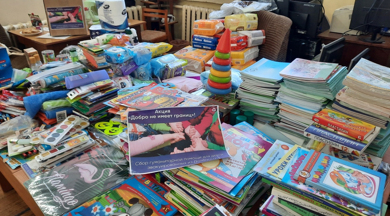 С 25 февраля по 2 марта от всех желающих помочь принимались канцелярские товары, творческие принадлежности, детские книги, раскраски, а также подгузники и пелёнки для малышей.