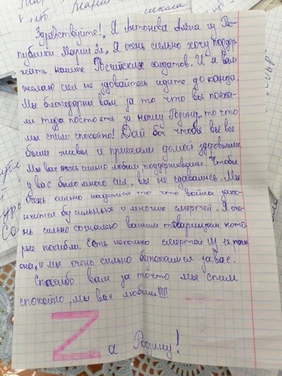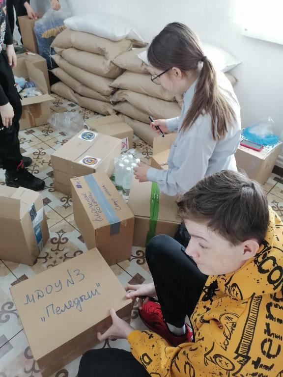 Вынужденным переселенцам повезли продукты питания, предметы первой необходимости, бытовую химию, медикаменты, одежду и обувь. В посылку также вложили теплые письма поддержки военнослужащим, которые написали дети.