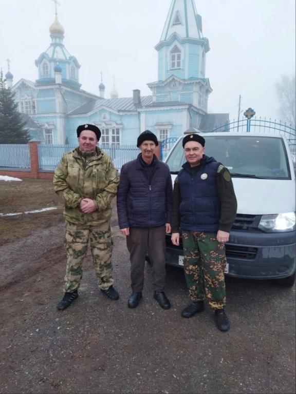Груз весом более 750 кг сопровождают казаки и настоятель храма Покрова Пресвятой Богородицы села Эмеково протоиерей Евгений Усков.