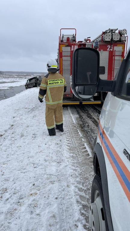 Спасатели Марий Эл участвовали в ликвидации последствий ДТП. Авария произошла накануне на Санчурском тракте недалеко от деревни Люльпаны.