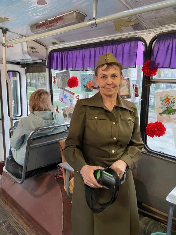 В Йошкар-Оле курсируют троллейбусы «Бессмертного полка». Накануне пассажиров транспорта встречали водители и кондукторы, переодетые в военную форму.